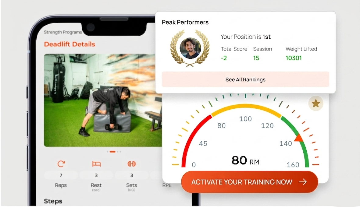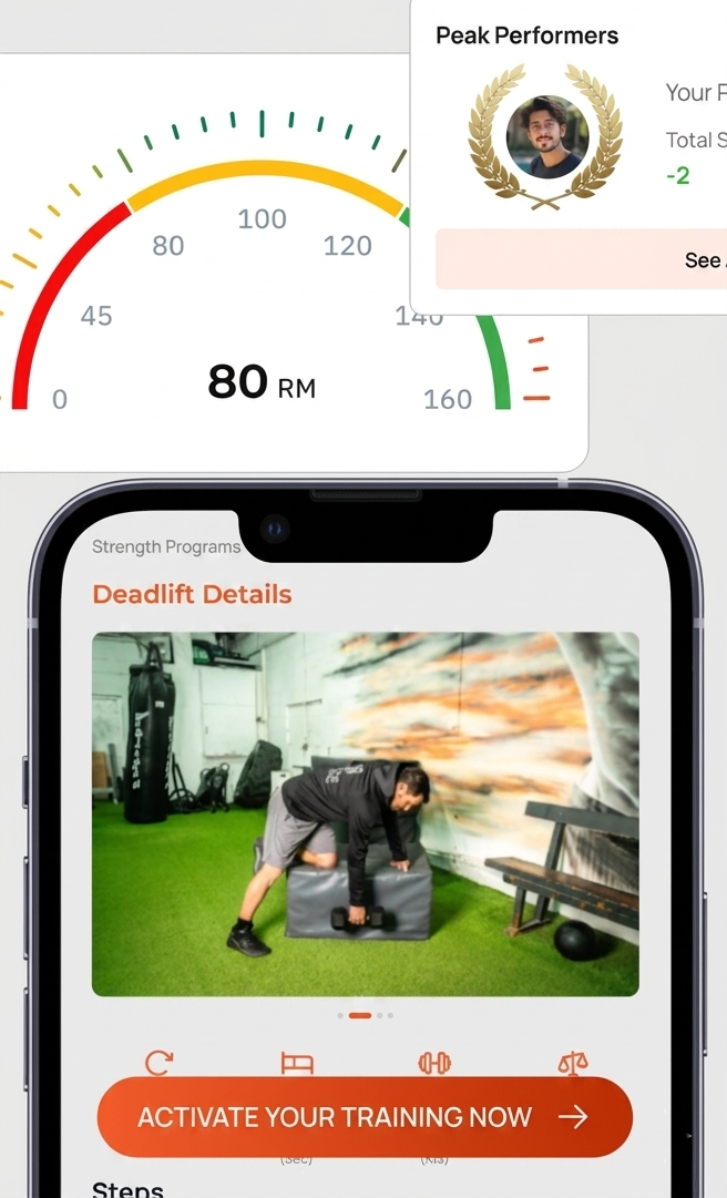 Access workouts, visualize lifts, and climb the leaderboard with a dashboard built to keep you focused and driven.